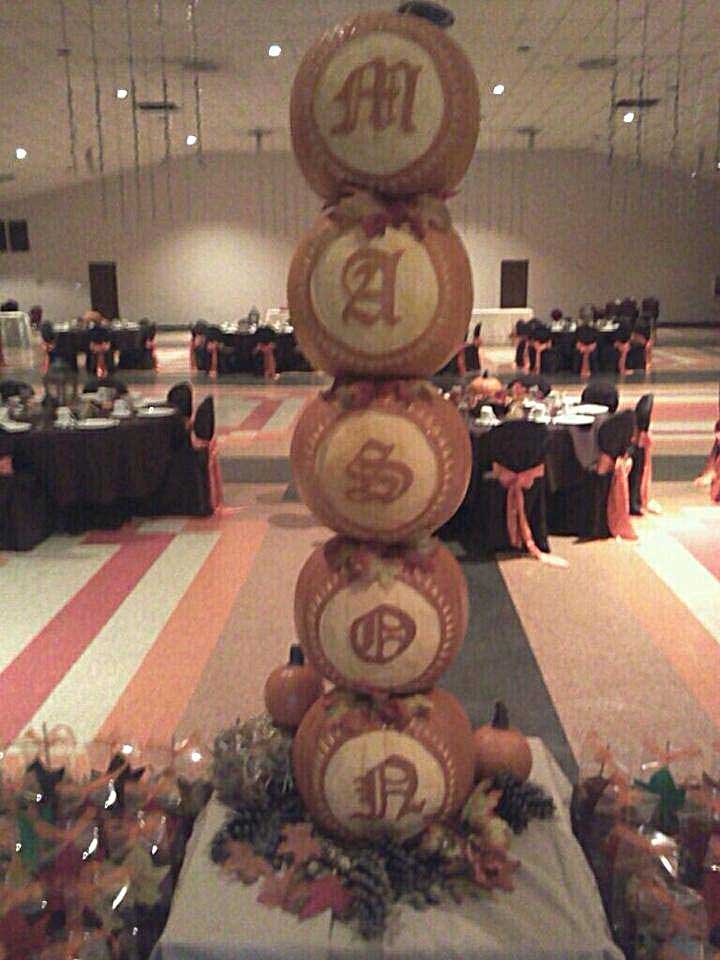 Are you looking for a way to bring the outside in and into your wedding? In this example, the bride and groom had a Fall theme, so the ice bar displayed pumpkins within the ice. In addition to an ice bar, they had their last name carved out in stacked pumpkins. Very unique!