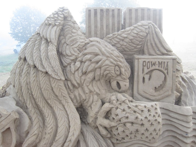 Sand Sculpture of Eagle and Flag